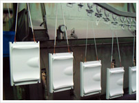 設計、製造から塗装、研磨、梱包にいたるまで、経験豊富な設計者がトータルな製品管理を行っています。実は、鋳物だけでなく、塗装まで自社で行っている鋳物メーカーはそう多くはございません。このため、当社とお取り引きいただいているほとんどのお客さまに、加工・塗装・梱包・完成品まですべてお任せいただいております。初めて鋳物を発注されるお客さまでも安心してお取り引きいただけるよう、一からていねいにご説明します。